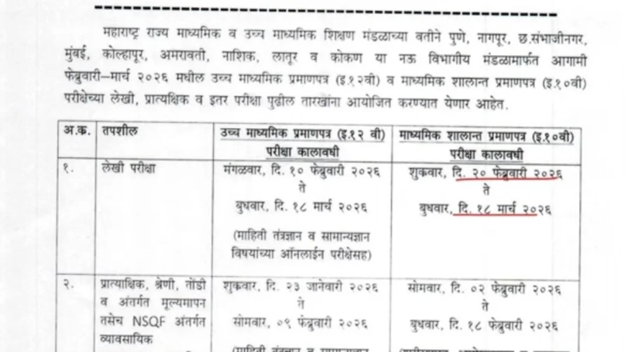 नवीन 12वी – 10वी बोर्ड परीक्षा 2026 वेळापत्रक जाहीर, पाहा पहिला कोणता पेपर.Maharashtra HSC SSC Board Exam 2026