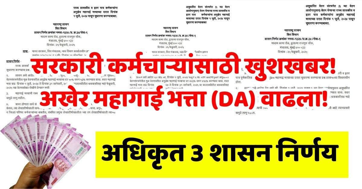 सरकारी कर्मचाऱ्यांसाठी दिलासादायक बातमी! जानेवारी महिन्यात मिळणार 03 मोठे आर्थिक लाभ – थकबाकी व फरकासह होणार अदा राज्य शासनाच्या सेवेत कार्यरत कर्मचाऱ्यांसाठी येणारा काळ आर्थिकदृष्ट्या दिलासा देणारा ठरणार आहे. राज्य कर्मचाऱ्यांना लवकरच तीन महत्वाचे आर्थिक लाभ मिळणार असून, हे सर्व लाभ थकबाकी / फरकासह अदा केले जाण्याची शक्यता आहे. यामुळे कर्मचाऱ्यांच्या वेतनात लक्षणीय वाढ होणार … Read more