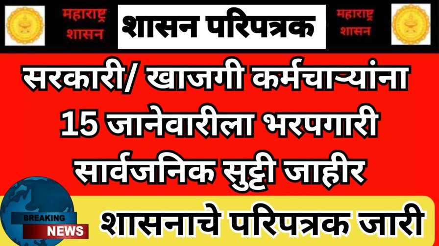 15 जानेवारीला कर्मचाऱ्यांना भरपगारी सार्वजनिक सुट्टी जाहीर; शासनाचे परिपत्रक जारी