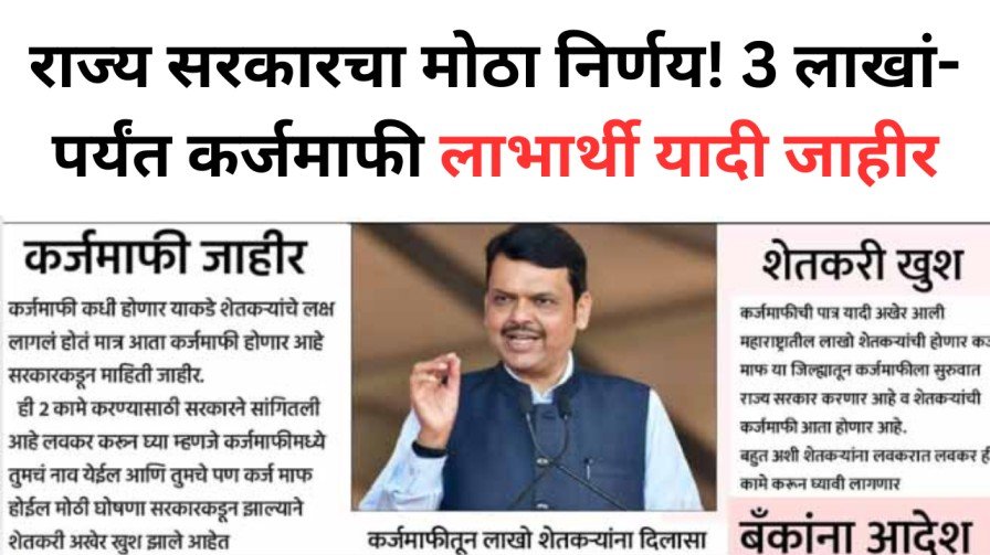 राज्य सरकारचा मोठा निर्णय! 3 लाखांपर्यंत कर्जमाफी लाभार्थी यादी जाहीर